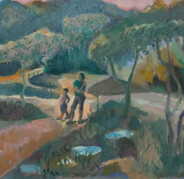 Jonathan's work is generally based on observation of landscape, figures and objects. Sometimes this is an end in itself other times intuition, memory and imagination drives the end result. Drawing is the key to everything. He is usually an oil painter but he never leaves drawing behind.