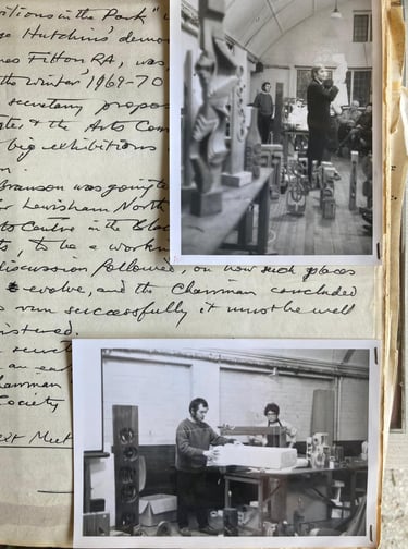 John Mansbridge, Vice Principal of Goldsmiths School of Art, was the first Chair, aided by Rob Brazil and Derek Cooper – newly back from years as Prisoners of War and as forced labourers on the Burma railway. Rob Brazil wrote“ one needs to know what life was like at the end of the war. There was a relief from fear and at the same time there was pride that Britain had withstood the attack.. For six long years the individual had been subordinated to the nation’s efforts to wage war. Now, without any feelings of guilt, individuals could express themselves as artists….”